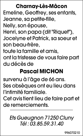 Décédé à Mâcon (71000, France) le dimanche 16 novembre 2025 à l'âge de 66 ans