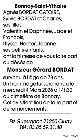 Décédé à Bonnay-Saint-Ythaire (71460, France) le vendredi 27 février 2026 à l'âge de 78 ans