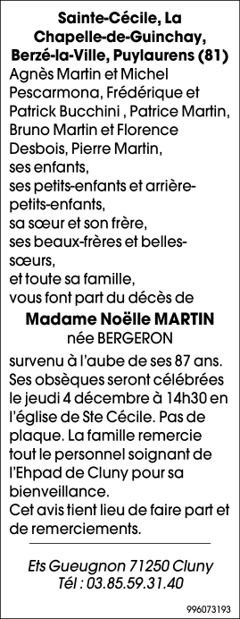 Décédée à Cluny (71250, France) le vendredi 28 novembre 2025 à l'âge de 86 ans