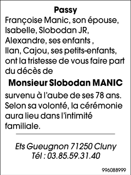 Décédé à Montceau-les-Mines (71300, France) le samedi 17 janvier 2026 à l'âge de 77 ans